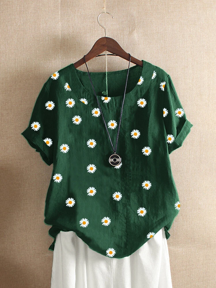 Be the first to review “Womens T-Shirts 2022 Round Neck Short Sleeve Causal Loose Summer Top Large Size Floral Print Female Cotton Clothes”